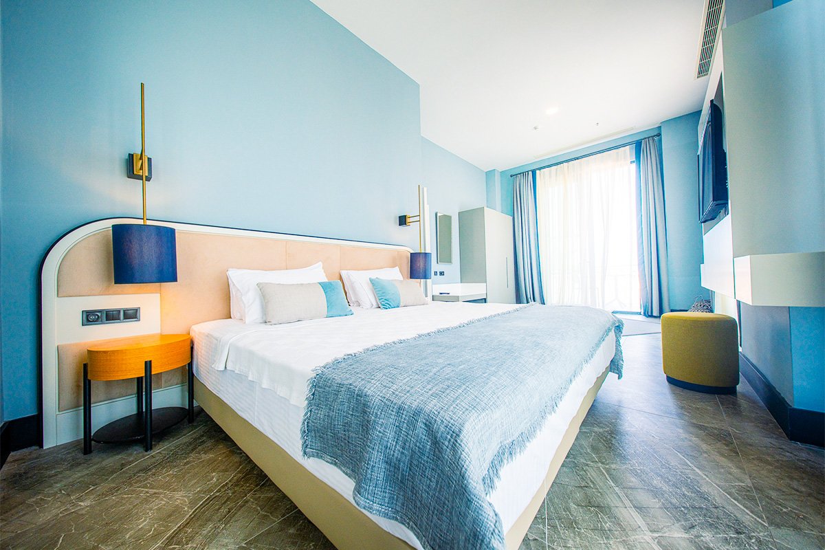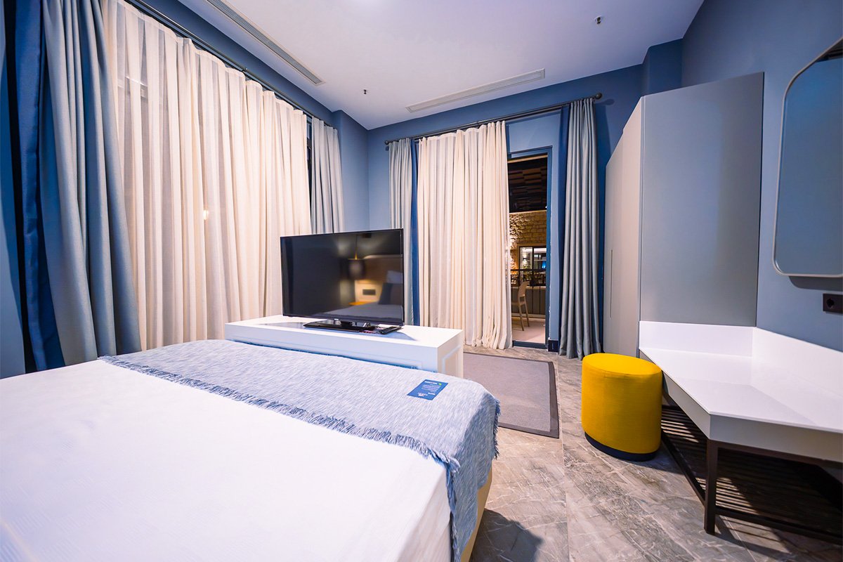 The Terrace Suite rooms are conveniently located near the hotel entrance and restaurant, providing effortless access throughout your stay. This makes them an excellent choice for guests who value ease and comfort. With their spacious layout and bright atmosphere, Terrace Suites are also well-suited for extended stays. Preferential rates for long-term accommodations are available upon request—please contact us for further details.